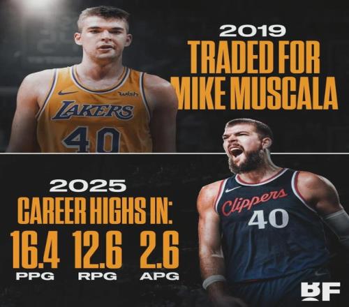 祖巴茨出生于1997年3月18日,2016年第32順位被湖人選中。10年NBA生涯,他一直在洛杉磯打球。2019年2月,湖人把祖巴茨和邁克爾-比斯利送到快船,2換1交易得到穆斯卡拉。結(jié)果穆斯卡拉在湖人只打了17場比賽就離隊(duì)了!