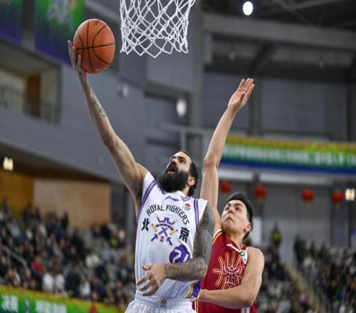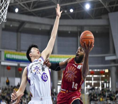 2月7日,北京控股隊球員里勒(左)在比賽中上籃。新華社記者 貝赫 攝